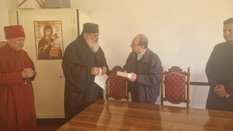 Mons. Basilio Teotokita, Egumeno del Monastero della Santa Madre di Dio e San Basilio Magno, e Monsignor Giordano Ambrosio Cromaziano Vescovo di Aquileia.