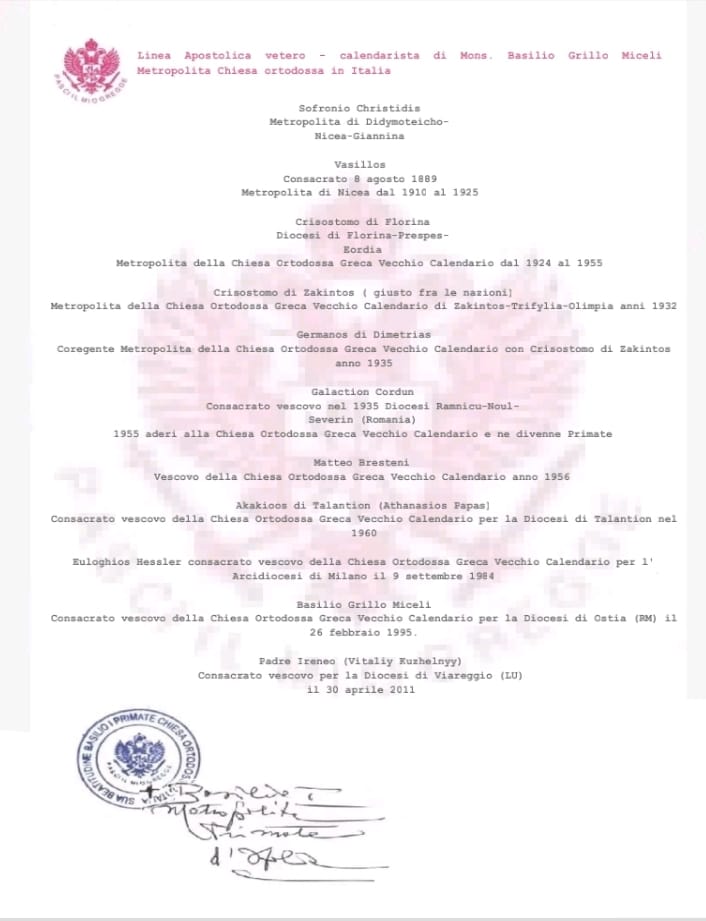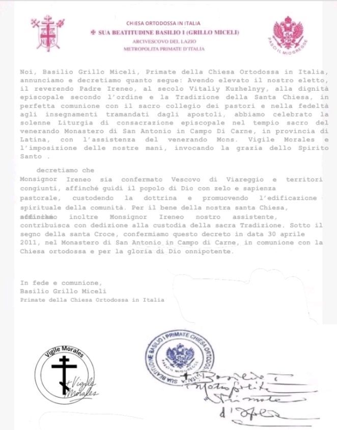 primo Arcivescovo Metropolita di questa giurisdizione ecclesiastica. Nel 1997 la "Chiesa Ortodossa in Italia", già legata