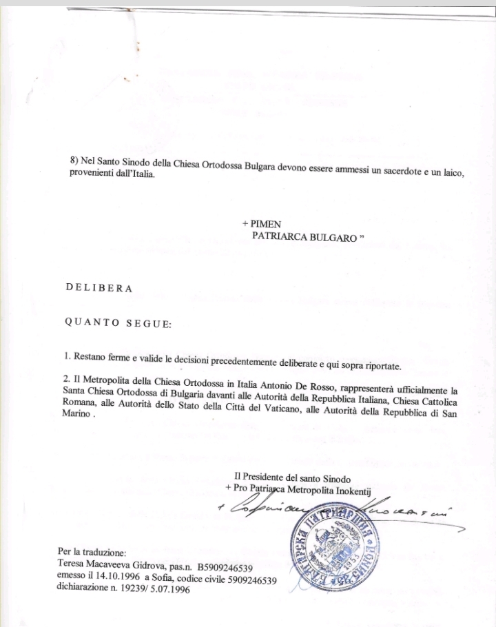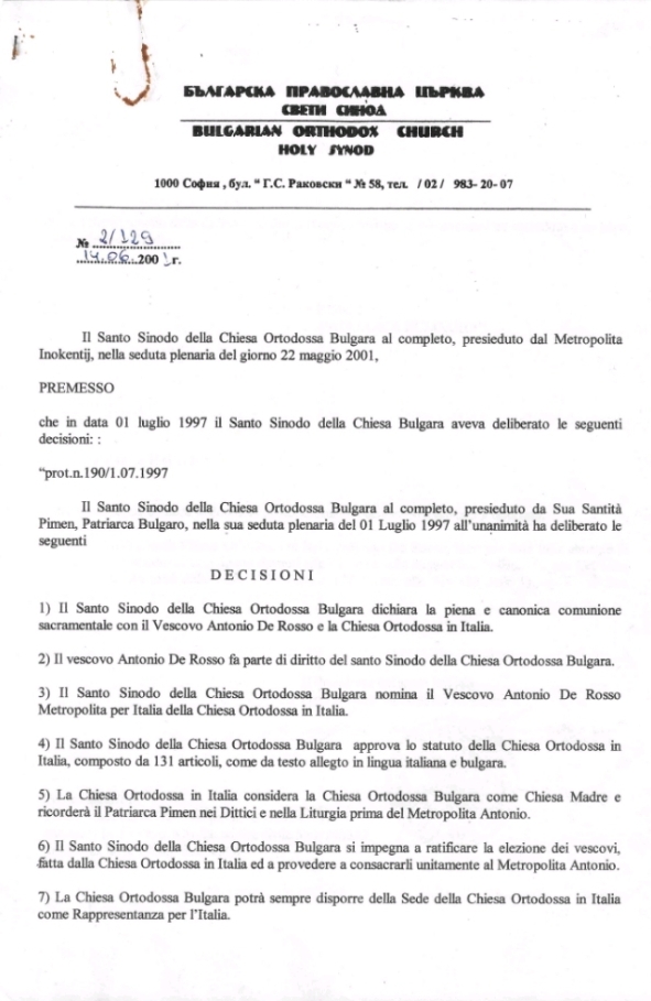 Italia è una emanazione della Chiesa Ortodossa Bulgara, in quanto Sua